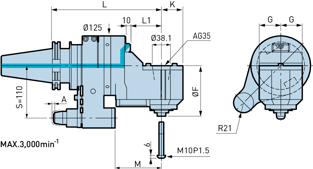 Winkelkopf Aufbau-Typ mit Kühlmittel durch dem Zentrum