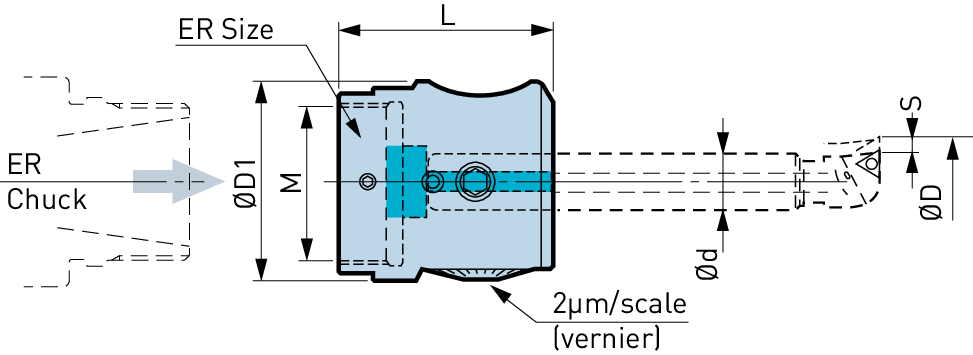 Fine boring head in integral, modular, and screw-on execution for the precise machining of bores.