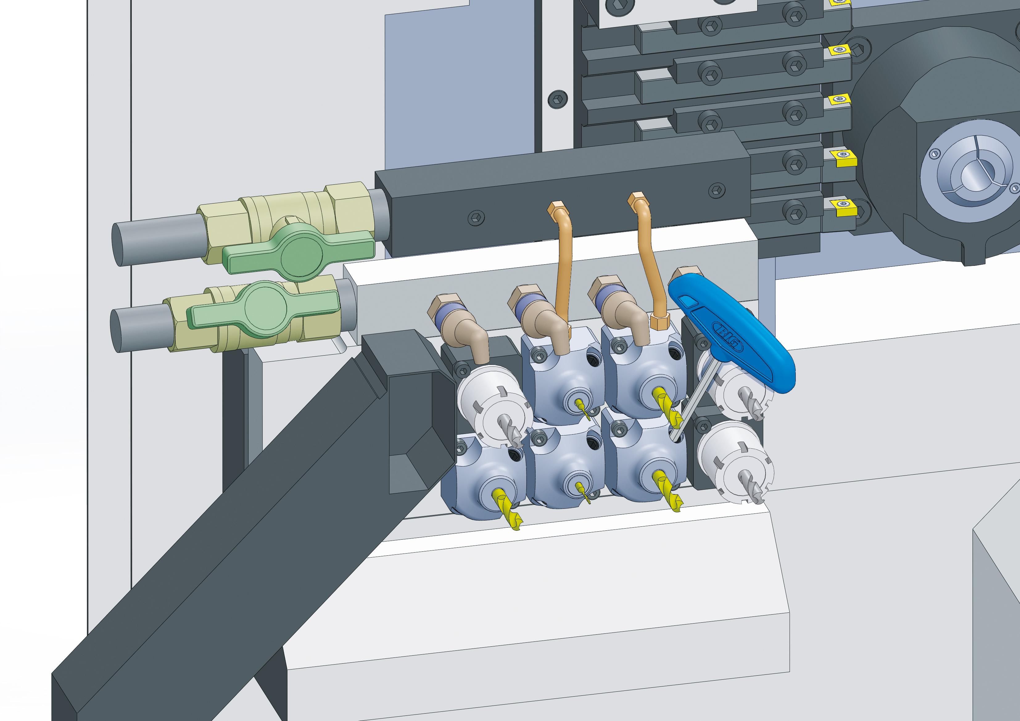 The Hydraulic Chuck Lathe Type B expands BIG KAISER's lineup, adding to the Standard, F, and R Types with its tailored adaptability for unique machine requirements. The Standard model offers front tool clamping, the F Type allows rear operation in tight spaces, and the R Type, with its square shape, suits setups needing multiple tool rows without interference.