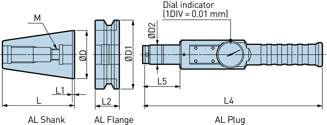 For maintenance of machine tool spindles. Equipment to measure misalignment between the ATC arm and machine tool spindle or magazine pot center.