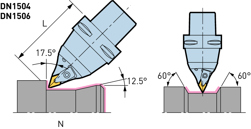 - * Carbide shim for 4.76 mm thick DN1504 insert is included as standard. In case of DN1506 insert (thickness of 6.35 mm), please replace the standard carbide shim with DNS1506 (option).