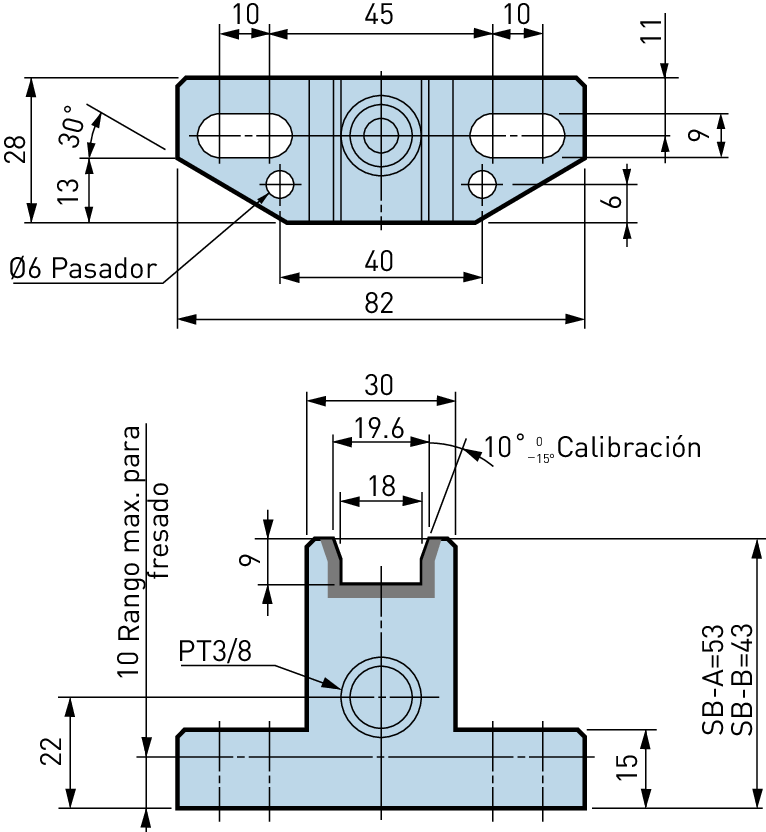 Si no es posible obtener un Bloque anti-giro ya acabado del fabricante de la máquina-herramienta, puede utilizarse un Bloque anti-giro semiacabado. Póngase en contacto con el fabricante de la máquina-herramienta para seleccionar, mecanizar y montar un Bloque anti-giro semiacabado.