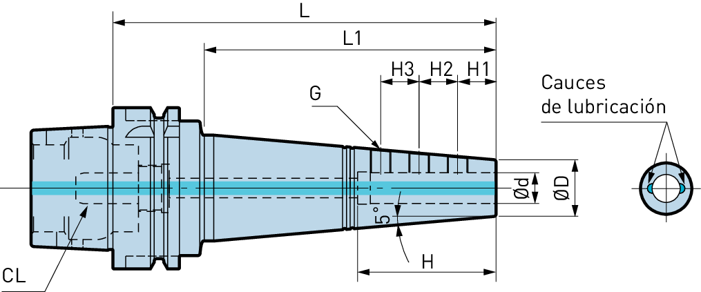 Una alternativa al térmico, su forma cónica evita las interferencias. Requiere fresas de mango Weldon.