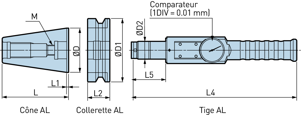 Pour l’entretien de la broche machine. Equipement de mesure du défaut d’alignement du changeur d’outils entre la broche et le support. Réglage aisé grâce au comparateur.