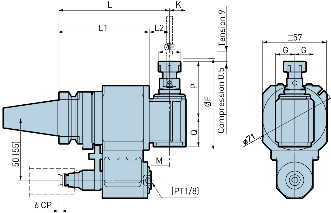 Tête à renvoi d'angle Légère modèle taraudage BBT