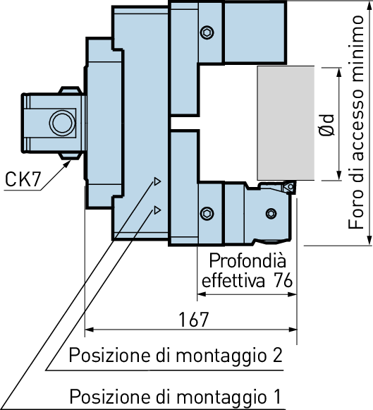 Gli utensili di finitura e di sgrossatura standard (EWN, EWE e SW) possono essere utilizzati per la tornitura del diametro esterno con il ponte di tornitura OD. L'ampia gamma è coperta da 5 ponti.