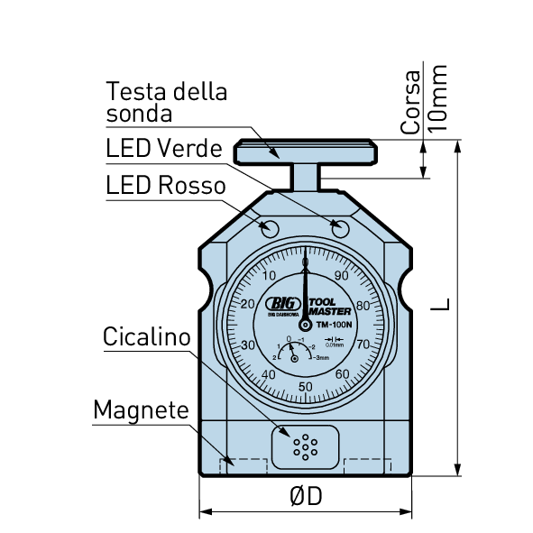 Tool Master è un sensore con un grande display analogico. La luce LED ed il suono pre indicano l’avvicinarsi ai 100 mm di altezza per facilitare l’operazione di rilevamento.
